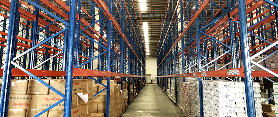 重型貨架: 1440平方米,貨架高度8.1米,前移式叉車取貨。